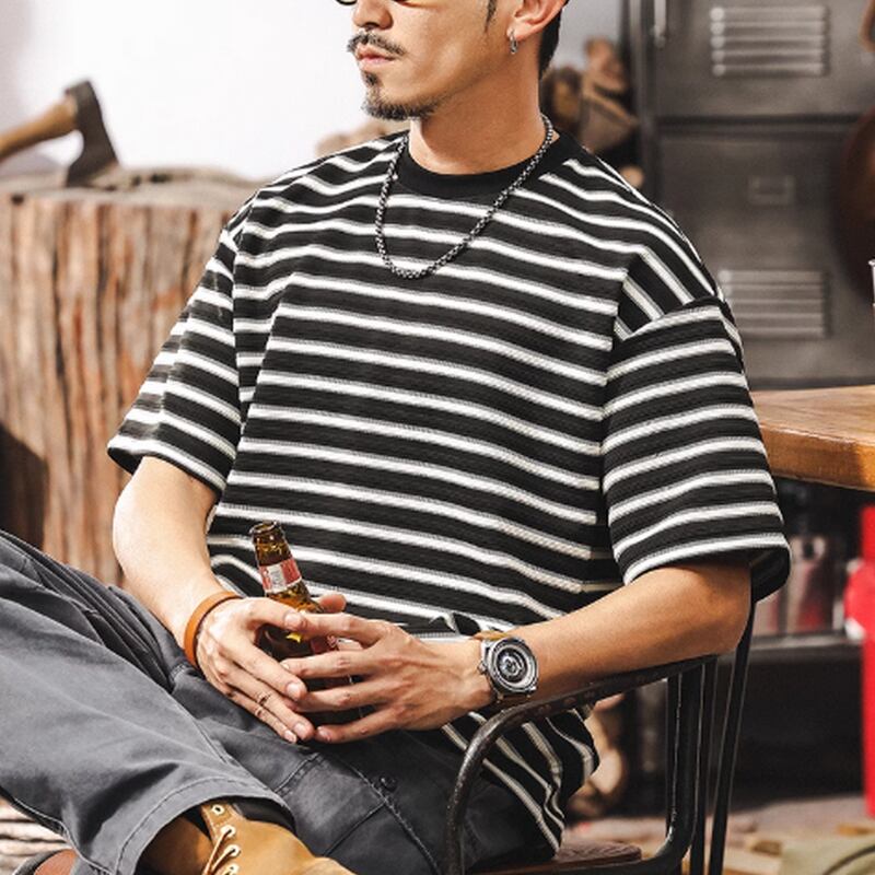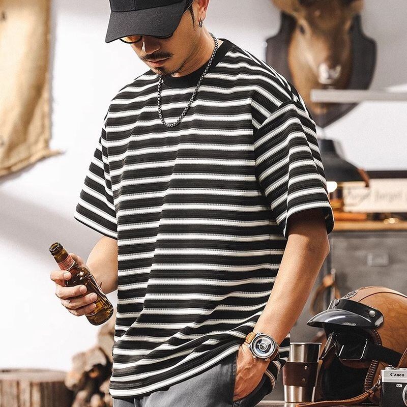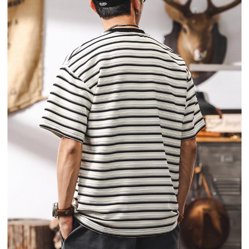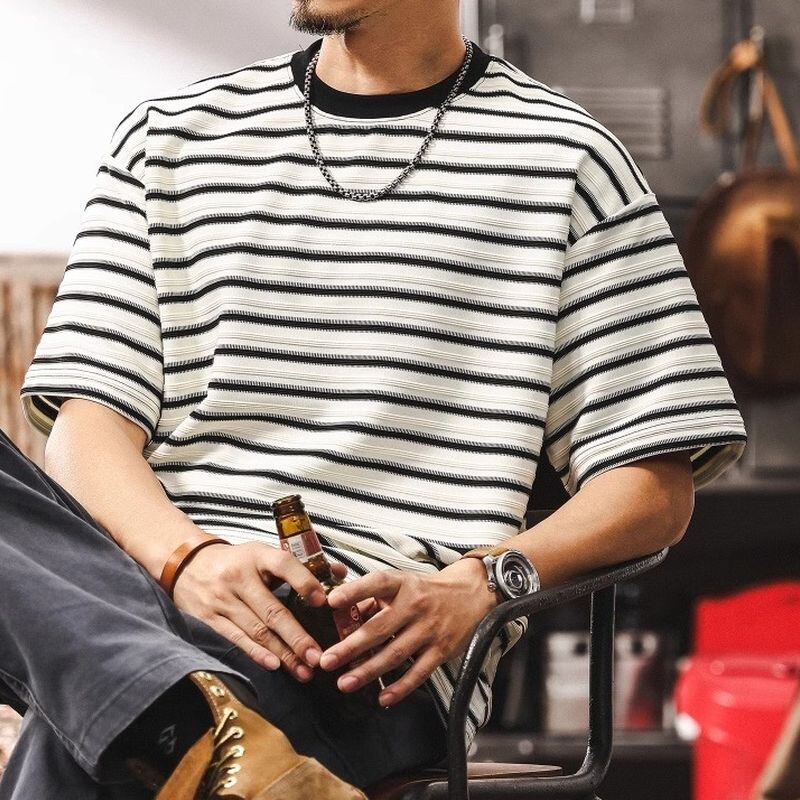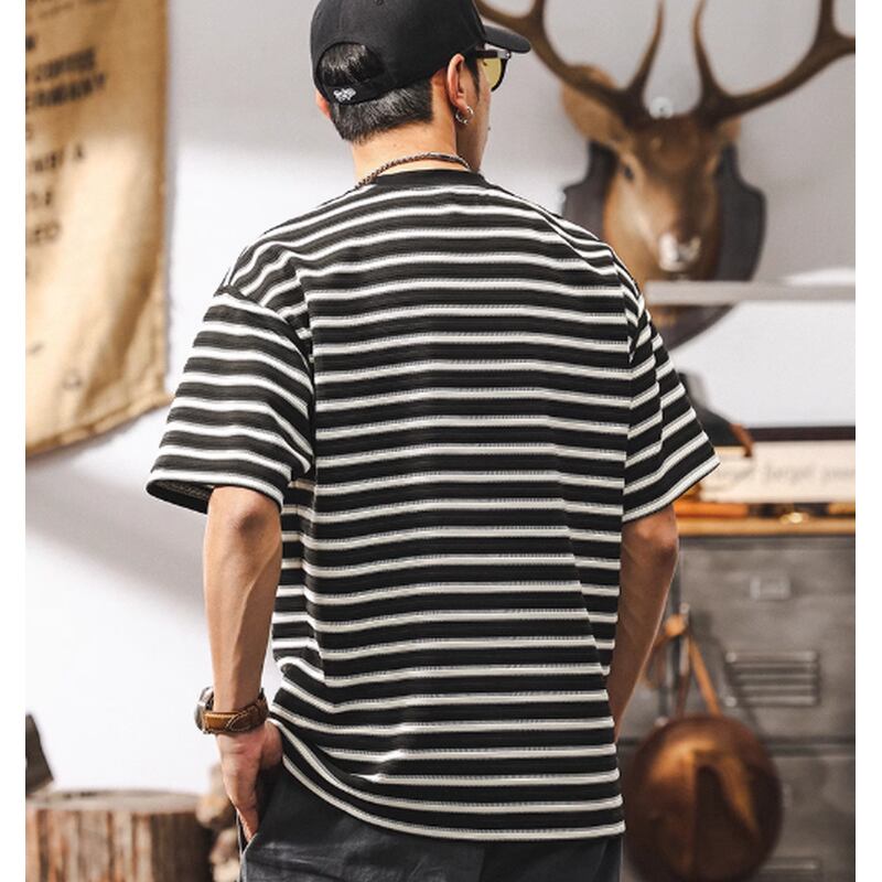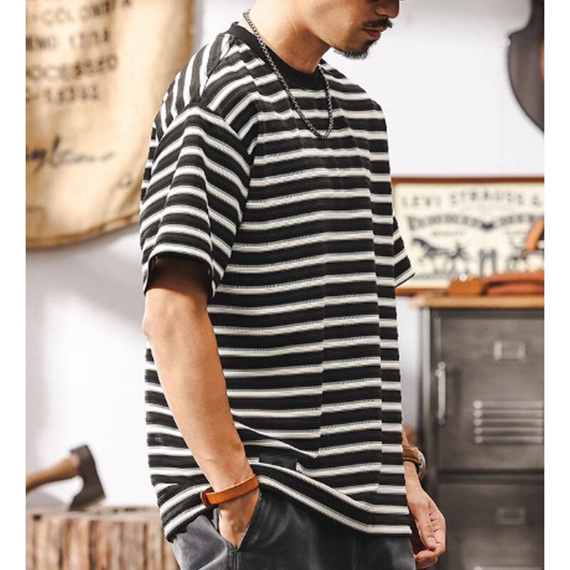 【商品詳細】 細ピッチのストライプ柄が、すっきりとした印象を与えます。 裾のボタン付きパッチが、他にはないユニークなポイント。 さりげないディテールで差をつけたい、こだわりのあるあなたにおすすめのTシャツです。 ■カラー ホワイト ブラック ■素材 ポリエステル95% スパンデックス5% ■サイズ M 肩幅51.0cm/胸囲106cm/着丈68cm/袖丈20cm L 肩幅52.5cm/胸囲110cm/着丈70cm/袖丈21cm XL 肩幅54.0cm/胸囲114cm/着丈72cm/袖丈22cm 2XL 肩幅55.5cm/胸囲118cm/着丈74cm/袖丈23cm 3XL 肩幅57.0cm/胸囲122cm/着丈75cm/袖丈24cm 4XL 肩幅58.5cm/胸囲126cm/着丈76cm/袖丈25cm ※海外製品の為1~3cmの誤差がある場合がございますのでご容赦ください 。 ーーーーーーーーーーーーーーーーーーーーーーーーーー ■ご購入前に必ずこちらをお読みください →https://shop.dep-official.com/about ーーーーーーーーーーーーーーーーーーーーーーーーーー 【お届けについて】 当店はお客様からご注文を受けてから商品を海外より一点一点お取り寄せしております。 お取り寄せ後、海外店舗より直接発送となるためご入金から1~4週間前後で発送致します。 商品の状況により4週間以上かかる場合もございます。 その場合当店よりご連絡を致します。 ◼️注意事項 ・タイミングによっては 商品在庫切れにより 注文キャンセルとさせていただく恐れもございますので、 予めご了承くださいませ。 ・こちらは輸入品となります。 日本製とは検品基準が異なる為、新品未使用品でも ごくわずかな汚れや傷がある場合もございます。 ・商品の色味は、お手持ちのデバイスの 画面によって実物と若干異なる場合がございます。 ・イメージ違いやサイズ等、お客様都合による交換、 返品、キャンセルは対応出来かねます。