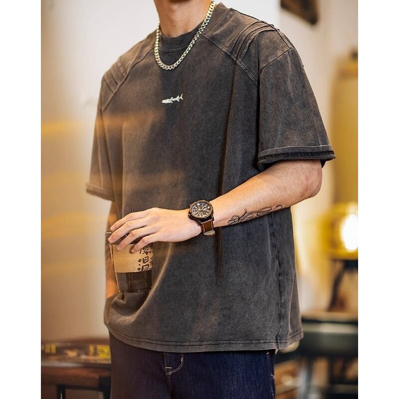 【商品詳細】 胸元のユニークなフィッシュボーンが、さりげない遊び心を演出するウォッシュドTシャツ。 ヴィンテージ感のある風合いと、肩のステッチデザインがこなれた印象を与えます。 シンプルながらも個性が光る、アメカジスタイルのアクセントに最適な一枚です。 ■カラー グレー ブラウン ■素材 コットン100% ■サイズ M 肩幅44.5cm/胸囲102cm/着丈65cm/袖丈23.5cm L 肩幅46cm/胸囲106cm/着丈67cm/袖丈24.5cm XL 肩幅47.5cm/胸囲110cm/着丈69cm/袖丈25.5cm 2XL 肩幅49cm/胸囲114cm/着丈71cm/袖丈26.5cm 3XL 肩幅50.5cm/胸囲118cm/着丈73cm/袖丈27.5cm 4XL 肩幅52cm/胸囲122cm/着丈75cm/袖丈28.5cm ※海外製品の為1~3cmの誤差がある場合がございますのでご容赦ください 。 ■モデル情報 178cm/65kg/Lサイズ着用 ーーーーーーーーーーーーーーーーーーーーーーーーーー ■ご購入前に必ずこちらをお読みください →https://shop.dep-official.com/about ーーーーーーーーーーーーーーーーーーーーーーーーーー 【お届けについて】 当店はお客様からご注文を受けてから商品を海外より一点一点お取り寄せしております。 お取り寄せ後、海外店舗より直接発送となるためご入金から1~4週間前後で発送致します。 商品の状況により4週間以上かかる場合もございます。 その場合当店よりご連絡を致します。 ◼️注意事項 ・タイミングによっては 商品在庫切れにより 注文キャンセルとさせていただく恐れもございますので、 予めご了承くださいませ。 ・こちらは輸入品となります。 日本製とは検品基準が異なる為、新品未使用品でも ごくわずかな汚れや傷がある場合もございます。 ・商品の色味は、お手持ちのデバイスの 画面によって実物と若干異なる場合がございます。 ・イメージ違いやサイズ等、お客様都合による交換、 返品、キャンセルは対応出来かねます。