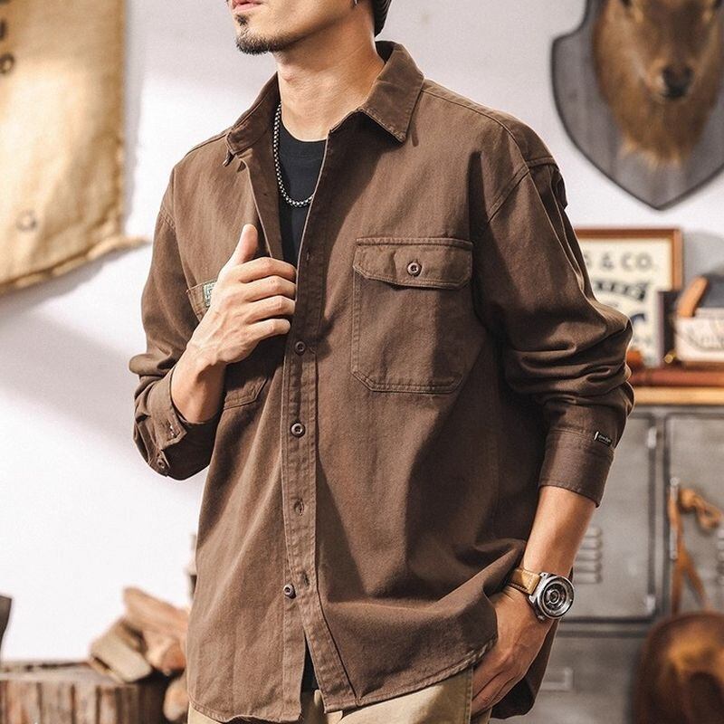 【商品詳細】 胸元に配された大きな両ポケットが特徴的な、タフな印象のワークシャツ。 ゆったりとしたオーバーサイズのシルエットで、中にパーカーやTシャツを重ね着してももたつきません。 ミリタリーやアメカジスタイルにぴったりな、着回し力抜群のアイテムです。 ■カラー グレー ブラウン ブラック ■素材 コットン100% ■サイズ M 肩幅51cm/胸囲114cm/着丈71cm/袖丈55.5cm L 肩幅52.5cm/胸囲118cm/着丈73cm/袖丈56.5cm XL 肩幅54cm/胸囲122cm/着丈75cm/袖丈57.5cm 2XL 肩幅55.5cm/胸囲126cm/着丈77cm/袖丈58.5cm 3XL 肩幅57.5cm/胸囲130cm/着丈78cm/袖丈59.5cm 4XL 肩幅58.5cm/胸囲134cm/着丈80cm/袖丈60.5cm ※海外製品の為1~3cmの誤差がある場合がございますのでご容赦ください 。 ーーーーーーーーーーーーーーーーーーーーーーーーーー ■ご購入前に必ずこちらをお読みください →https://shop.dep-official.com/about ーーーーーーーーーーーーーーーーーーーーーーーーーー 【お届けについて】 当店はお客様からご注文を受けてから商品を海外より一点一点お取り寄せしております。 お取り寄せ後、海外店舗より直接発送となるためご入金から1~4週間前後で発送致します。 商品の状況により4週間以上かかる場合もございます。 その場合当店よりご連絡を致します。 ◼️注意事項 ・タイミングによっては 商品在庫切れにより 注文キャンセルとさせていただく恐れもございますので、 予めご了承くださいませ。 ・こちらは輸入品となります。 日本製とは検品基準が異なる為、新品未使用品でも ごくわずかな汚れや傷がある場合もございます。 ・商品の色味は、お手持ちのデバイスの 画面によって実物と若干異なる場合がございます。 ・イメージ違いやサイズ等、お客様都合による交換、 返品、キャンセルは対応出来かねます。